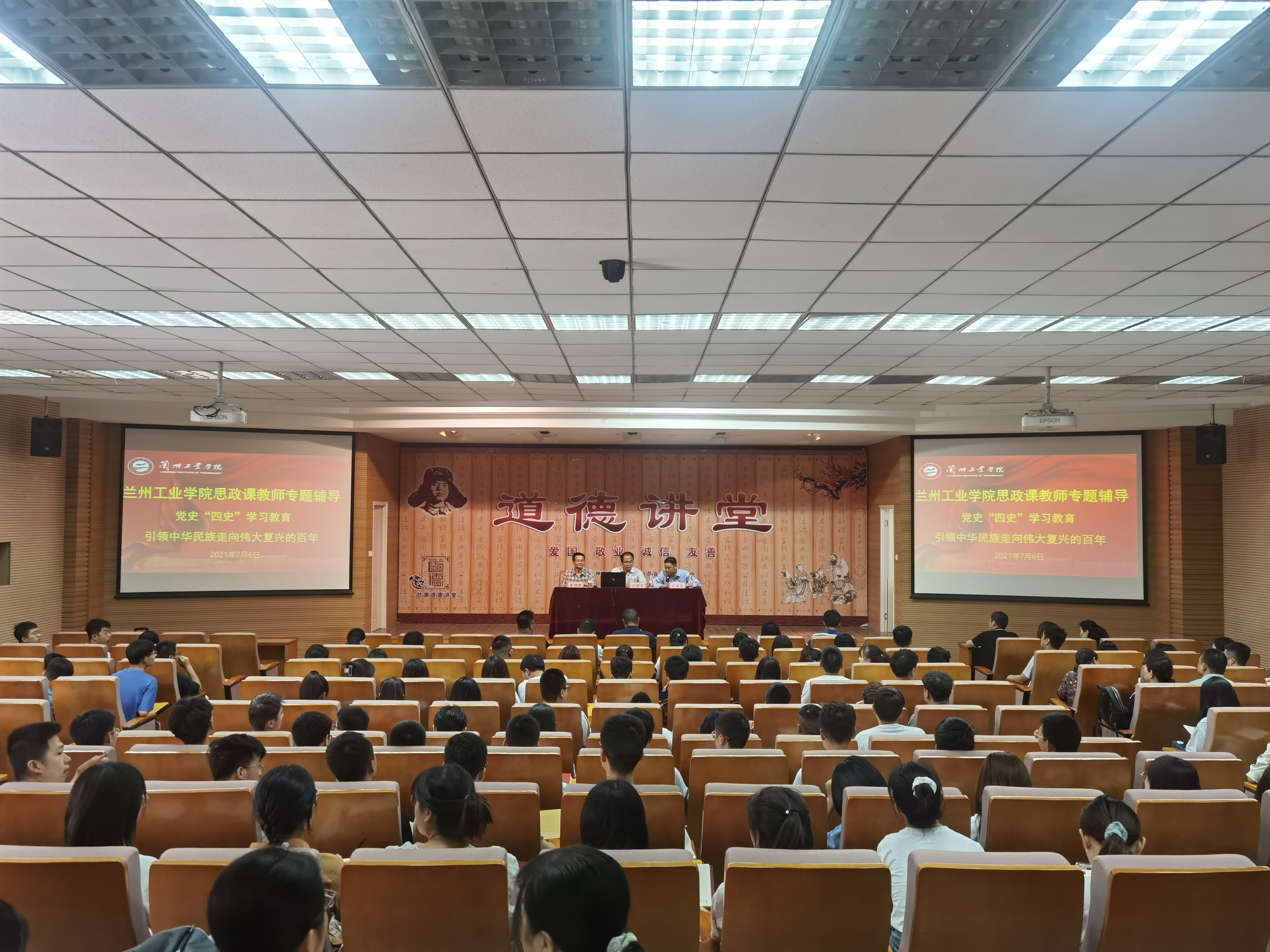 王重贤以《引领中华民族走向伟大复兴的百年》为题,从中国共产党诞生的国内国际背景、中国共产党的百年历程、树立正确的党史观等方面做了辅导报告。王重贤指出,中国共产党的百年历史,是中国共产党在马克思主义指导下为中国人民谋幸福,为中华民族谋复兴的历史,是一部始终推动人类文明进步的历史。王重贤表示,心中有信仰,脚下有力量,作为新时代的人民教师,要认真学习贯彻习近平总书记重要讲话精神,向“七一勋章”获得者学习,按照“四有好老师”的要求,忠诚党的教育事业,矢志不渝,不忘初心,勤奋敬业,做“心中有阳光”的新时代人民教师。新时代的大学生要珍惜韶华、不负青春,努力学习科学文化知识,提高综合素质,锤炼过硬本领,争做“强国有我”的自信青年。