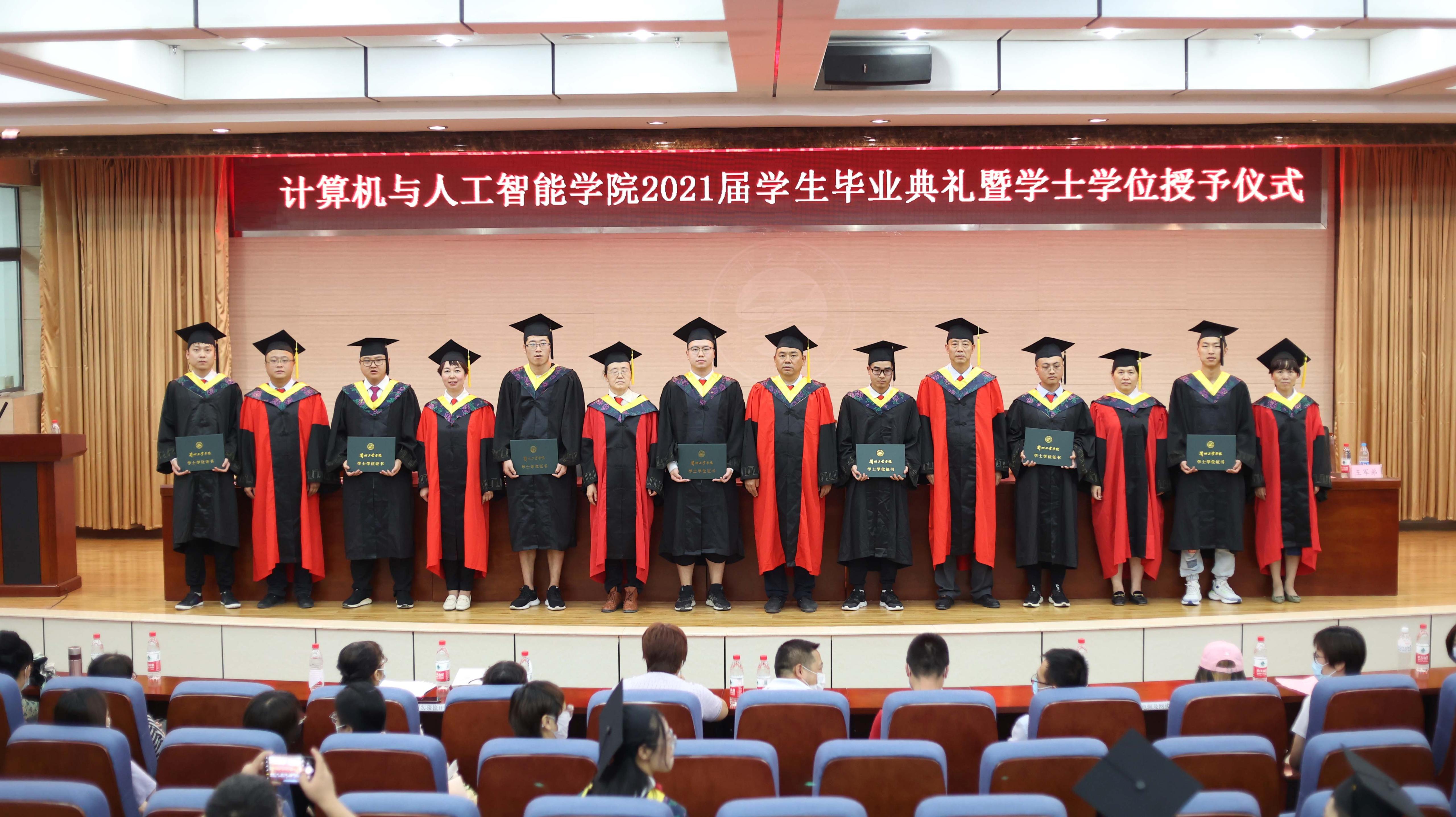 6月26日上午,计算机与人工智能学院举行2021届学生毕业典礼暨学位授予仪式。党委副书记黄荟铭出席典礼,学院学位评定分委会委员及全体教师、2021届毕业生参加典礼。学院副院长郑刚主持典礼。