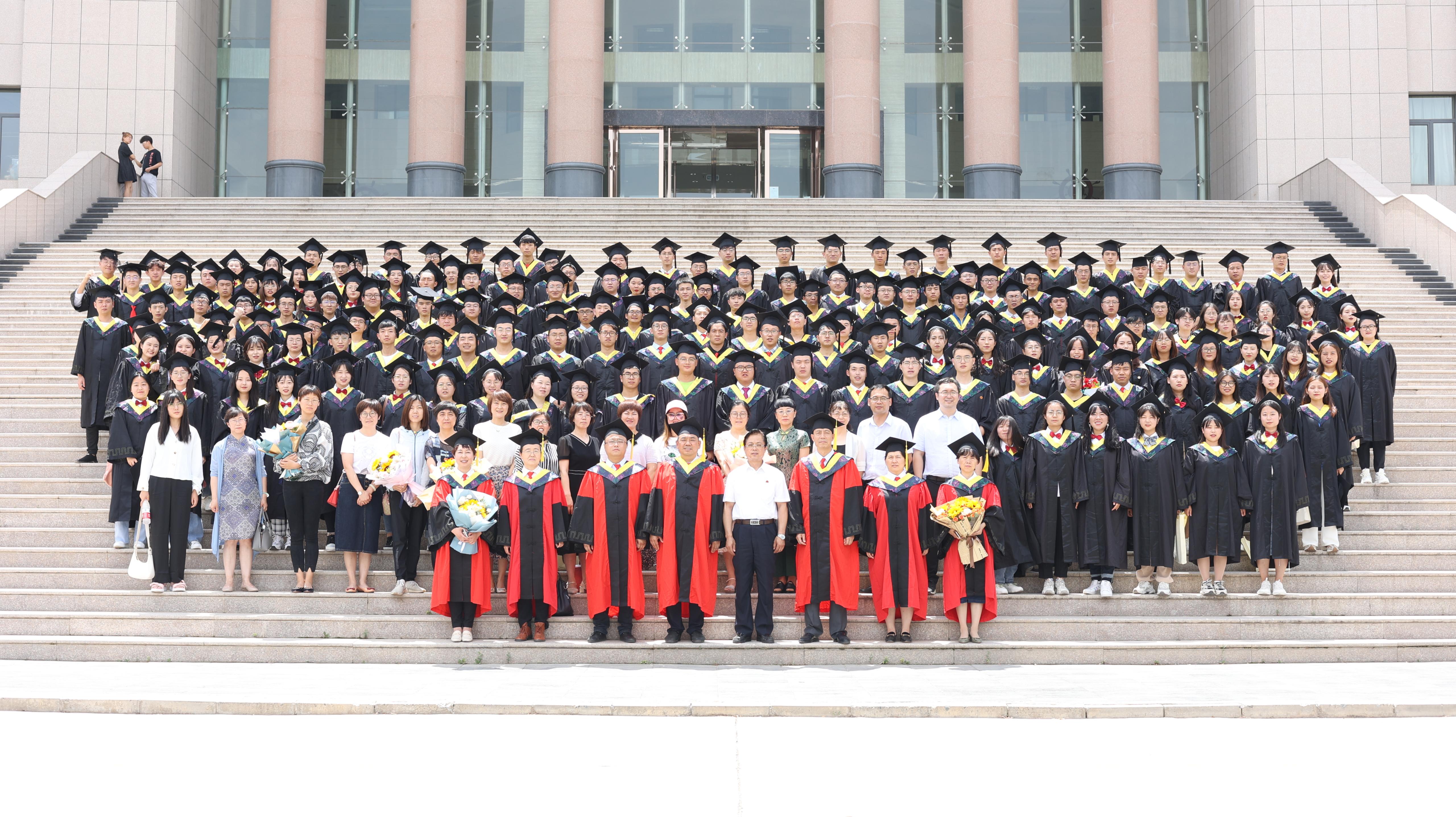 在欢快的歌曲中,学院学位评定分委会全体成员为220名本科毕业生正冠拨苏,颁发学位证书。
