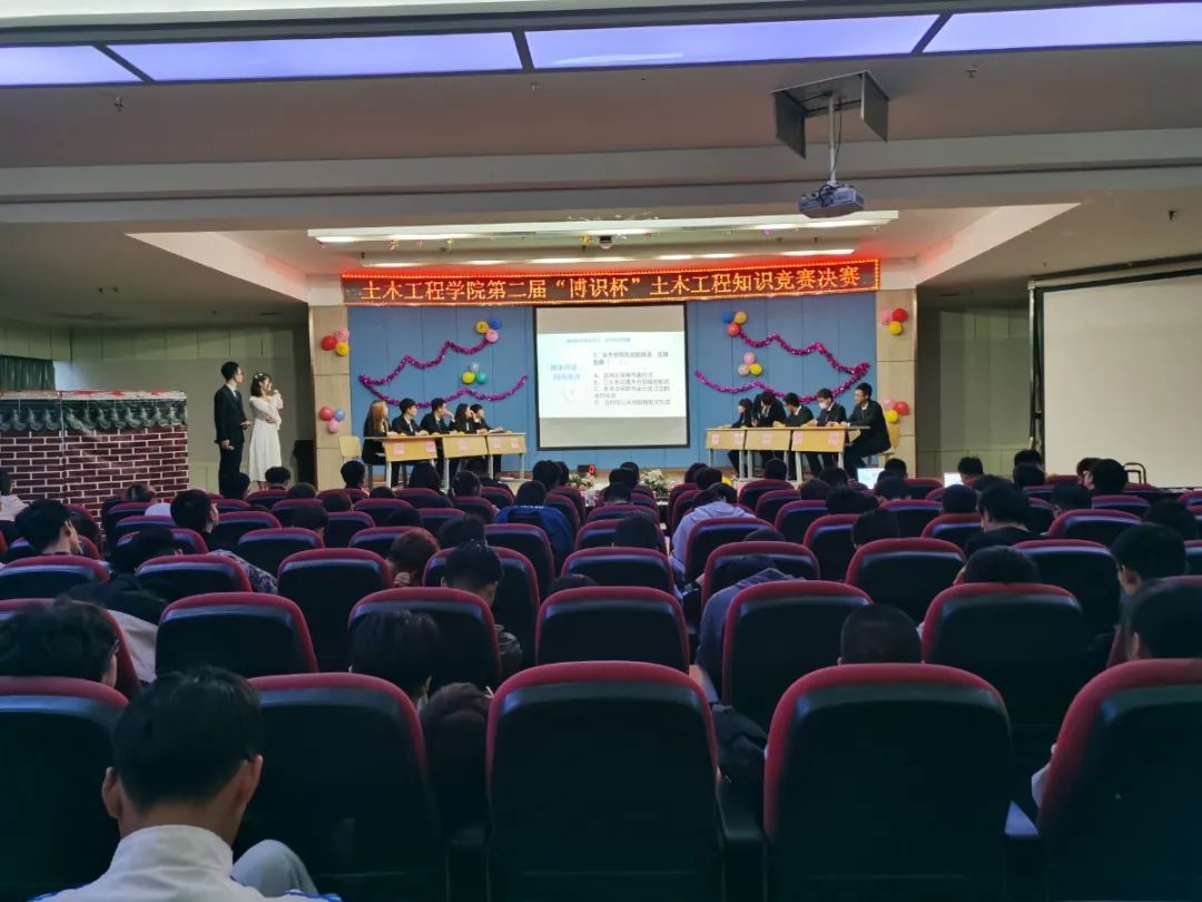 4月29日晚,土木工程学院在八楼会议中心举办第二届“博识杯”土木工程知识竞赛决赛。本次知识竞赛经过初赛的严格选拔和两周的素质培训,共有10位选手入围决赛。学院领导、团委书记,17级、18级辅导员以及20级全体同学观看了本次比赛。 决赛由答题、互动等七个环节组成。经过激烈角逐,最后,土木18-3班赵欣获一等奖,土木19-4班蒋家明、土木19-1班何成龄分获二等奖,造价20-2班芦玉杰、给排水19班张凡、土木18-4班丁旭伟分获三等奖,造价18-1班张爱兄、土木19-1班赵锦赟、造价20-2班马宵、土木19-4班辛封凯分获优秀奖。