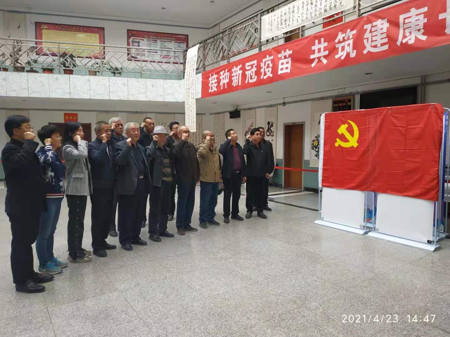 活动现场,全体党员佩戴党徽,高举右拳,坚定有力地重温了入党誓词;为不愿加装电梯的住户做思想工作,讲解有关政策;为体弱多病、行动不便的老教师上门服务,现场填写了征求意见表。最后,所有党员对新冠疫苗临时接种点进行了布置和现场消杀。