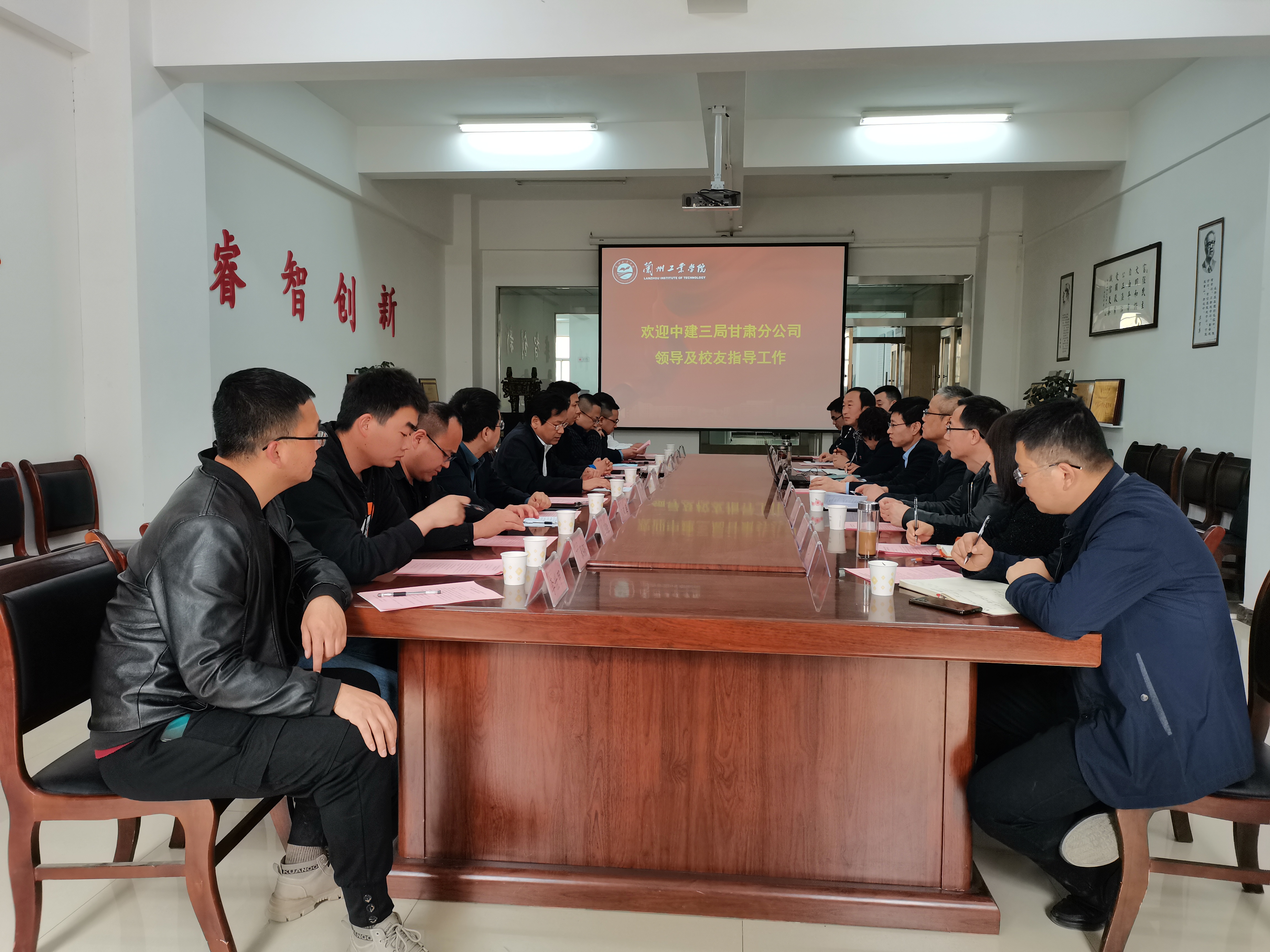 鲁剑蓉介绍了中建三局甘肃分公司的历史沿革、发展理念、人才需求等相关情况。他指出,兰州工业学院多年来为中建三局甘肃分公司输送了大量优秀人才,其中一批人才已经脱颖而出,在生产、管理等重要岗位担当重任,为中建三局甘肃分公司高质量发展作出了重要贡献。希望今后能够与学校、学院建立更多元的合作关系、更深厚的校企友谊,推动校企双方高质量发展。深化校企在应用型人才培养、选拔、输送等多方面的共赢机制,共创美好明天。