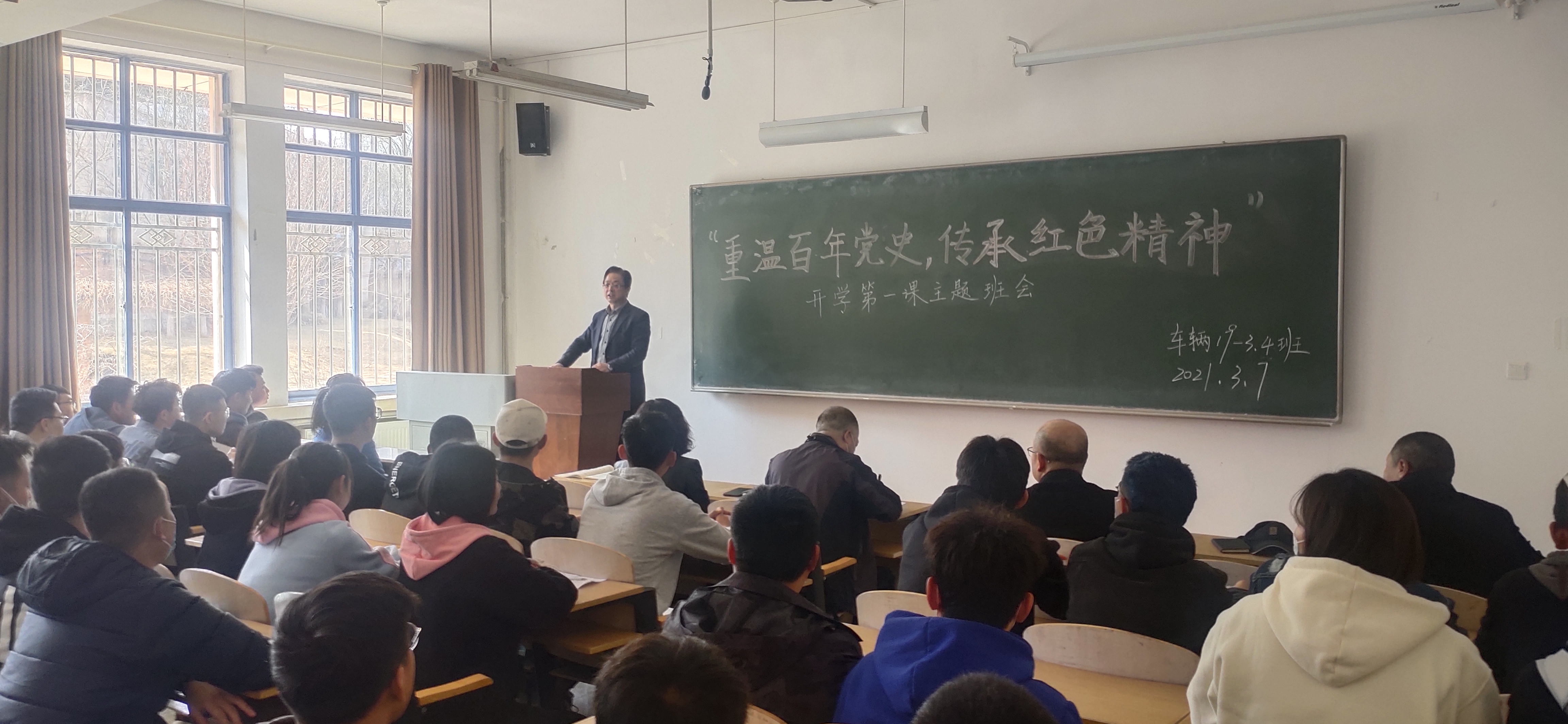 3月7日下午,汽车工程学院18个班级分别召开“重温百年历史 传承红色精神”开学第一课主题班会,校党委副书记黄荟铭出席车辆19-3、4班班会,学院党政班子成员、各班联系中层领导干部及相关班级全体学生参加班会。