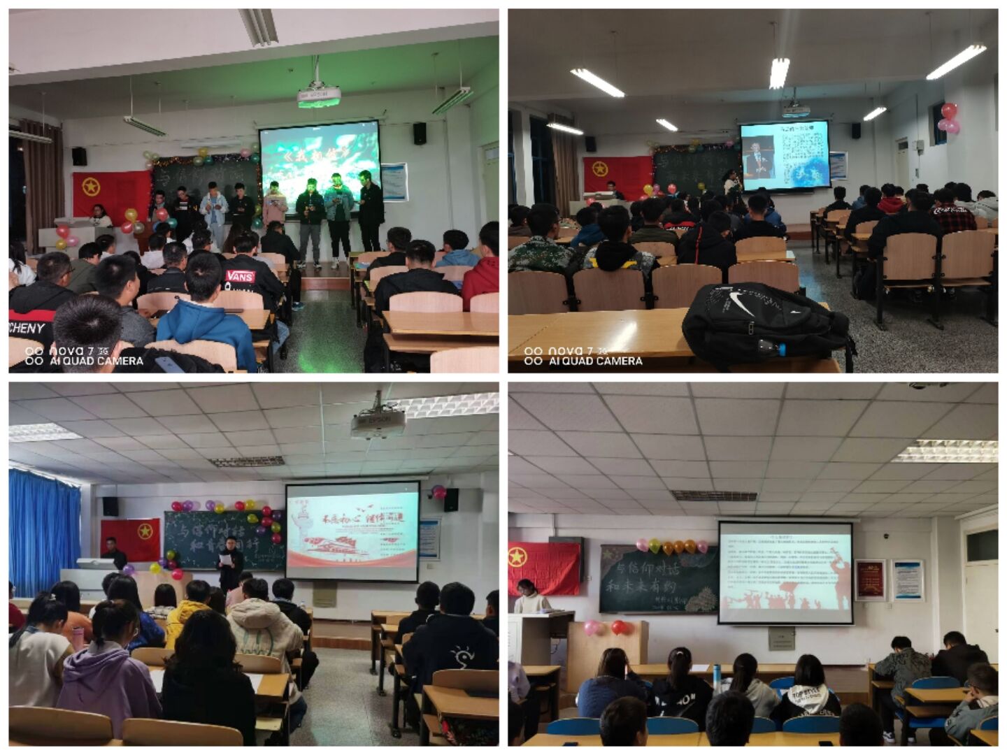 机电20-1班、测控20班、自动化20-2班等团支部开展“与信仰对话,与人生对话”学习讨论活动,重点围绕“什么是信仰”“如何坚定理想信念” “如何规划自己的人生”等内容展开学习讨论,引导青年学生追求崇高理想、确立人生信仰,充分发挥团员青年的表率作用。青年团员们纷纷表示,要坚定信仰,确立梦想、勇于奋斗,知行合一,撸起袖子加油干,做有责任心,有家国的情怀的人;要不断学习不断成长,做有理想、有本领、有担当的青年;要勇做时代的弄潮儿,在实现中国梦的生动实践中放飞青春梦想,在为人民利益的不懈奋斗中书写人生华章。