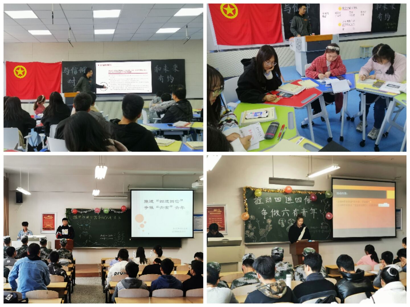车辆20-1班、软件20-1班、电气20-1班等团支部开展“四进四信”、争做“六有”青年主题团日活动,各团支部充分准备、精心策划,以诗歌朗诵、主题演讲、文艺表演等形式展开了一系列切合主题的活动,引导广大青年争做一名有理想、有追求、有担当、有作为、有品质、有修养的“六有”大学生,坚定了不忘初心、牢记使命,紧跟党的步伐向前走的信念,为决胜全面建成小康社会、夺取新时代中国特色社会主义伟大胜利、实现中华民族伟大复兴的中国梦奉献青春力量。