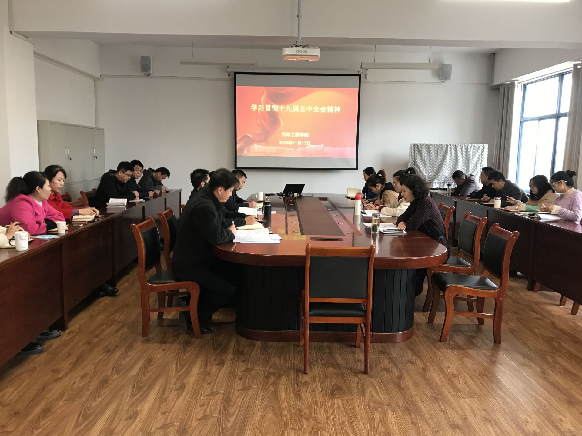 11月17日下午,汽车工程学院在学院会议室集中学习党的十九届五中全会公报内容,重点从决胜全面建成小康社会取得的决定性成就、到二〇三五年要实现的远景目标、“十四五”时期经济社会发展的主要目标、实现奋斗目标的具体举措等四个方面领会全会精神。