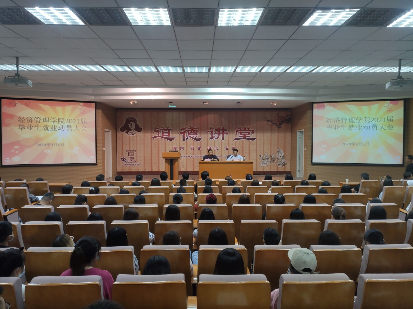 9月6日,经济管理学院在第二学术报告厅召开2021届毕业生就业动员大会,学院领导、全体辅导员、毕业班班主任及2021届全体毕业生参加会议。 会上,学院党委书记王春升从目前就业相关准备、就业形势、资源、方向及流程作了动员讲话。学院院长戴德锋介绍了学院历年考研、专升本、就业情况,并向同学们介绍了毕业实习等相关教学安排,他鼓励同学们树立正确的就业观、择业观,积极克服疫情带来的不利影响,以多种渠道关注就业信息,积极应聘,增加就业机会。