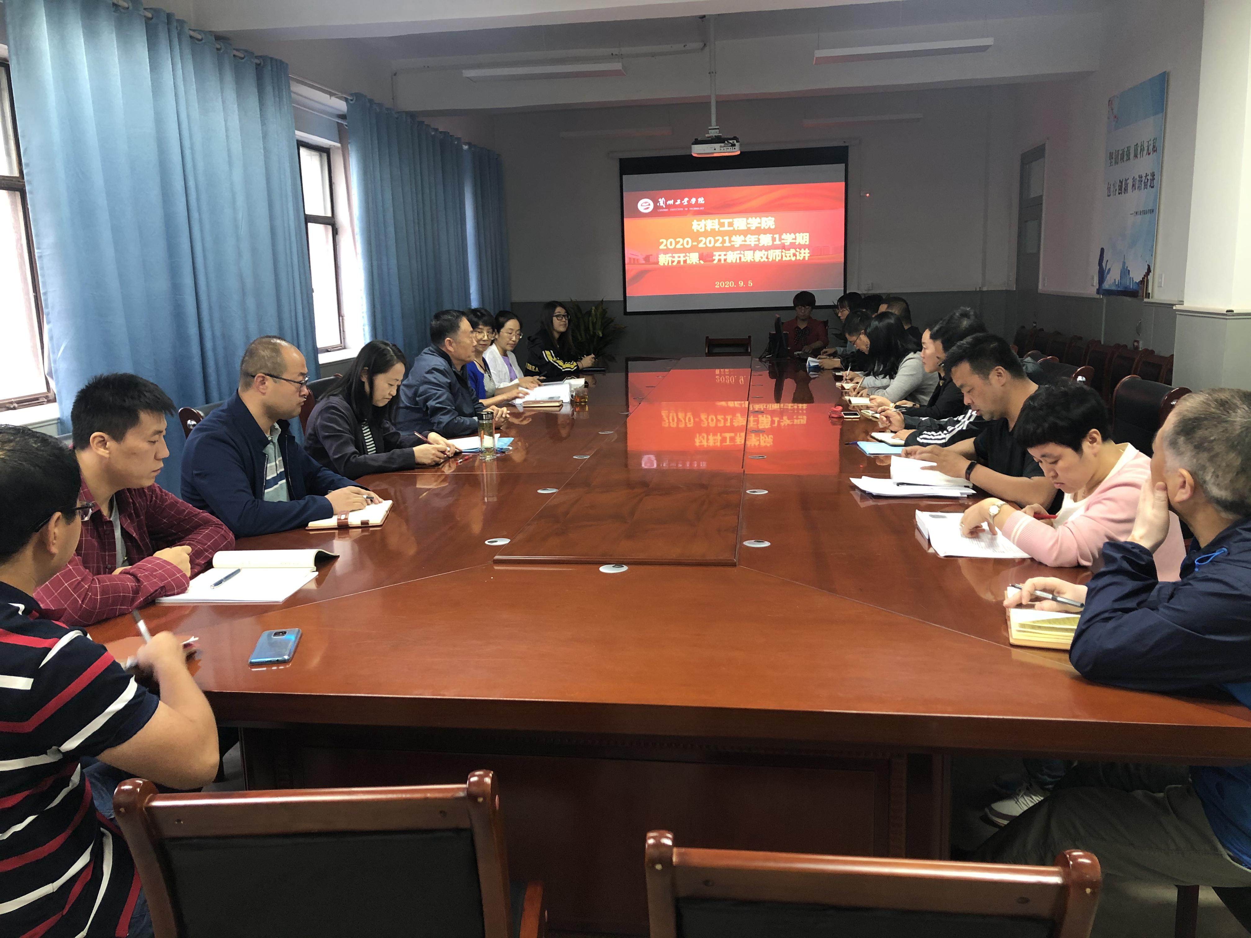 9月4-5日,材料工程学院在学院会议室开展2020-2021秋季学期新开课、开新课教师试讲和教学资料检查工作,学院领导、教学督导、系主任、实验中心主任以及全体新开课、开新课教师参加活动。 活动认真听取了9位教师14门课程的试讲,检查了相关教学文档,同时进行点评,并提出改进意见和建议,老教师与新课教师进行了交流学习。 本次活动,对规范教学资料、促进青年教师提高教学能力和质量具有积极意义。