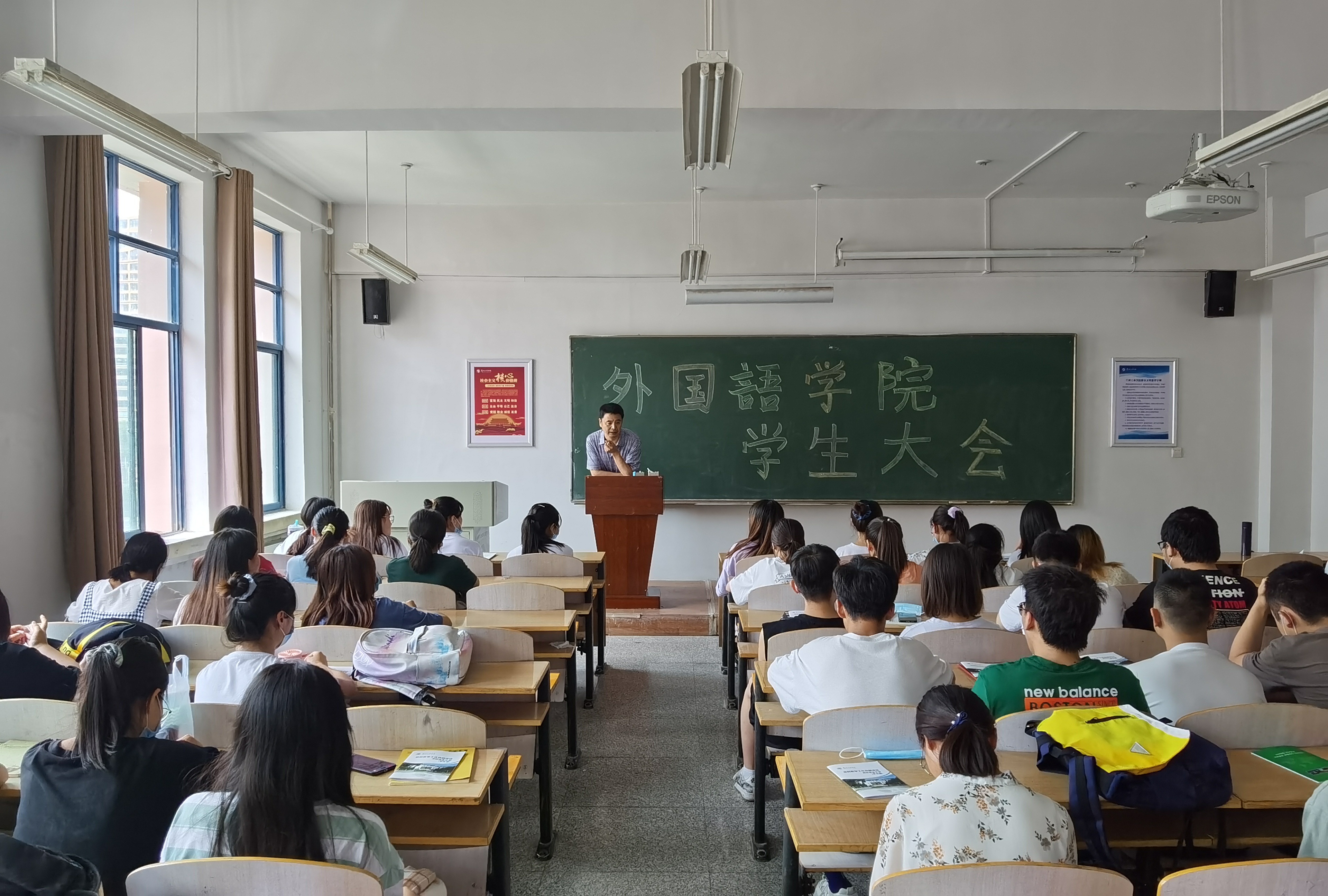 7月13日,外国语学院在四教A507召开学生大会。学院党总支书记文泽华,全体辅导员、班主任、学生参加会议。