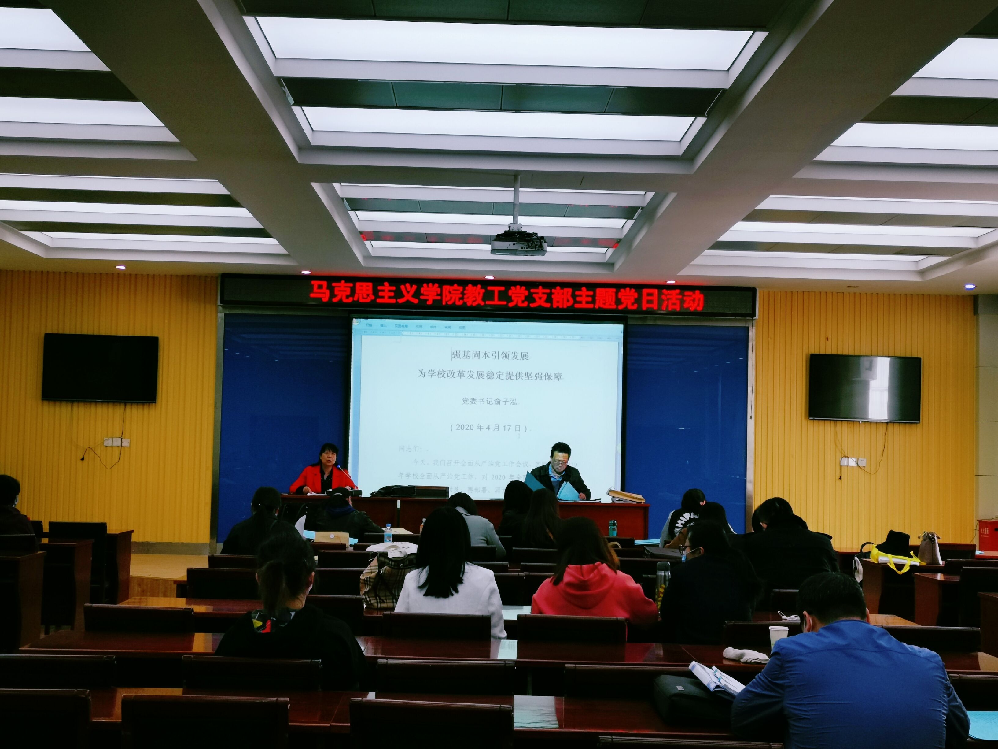 4月23日,马克思主义学院教工党支部在第一学术报告厅召开主题党日政治理论专题学习会。学院院长、教工党支部书记张小华主持会议,学院30余名教师党员参加会议。
