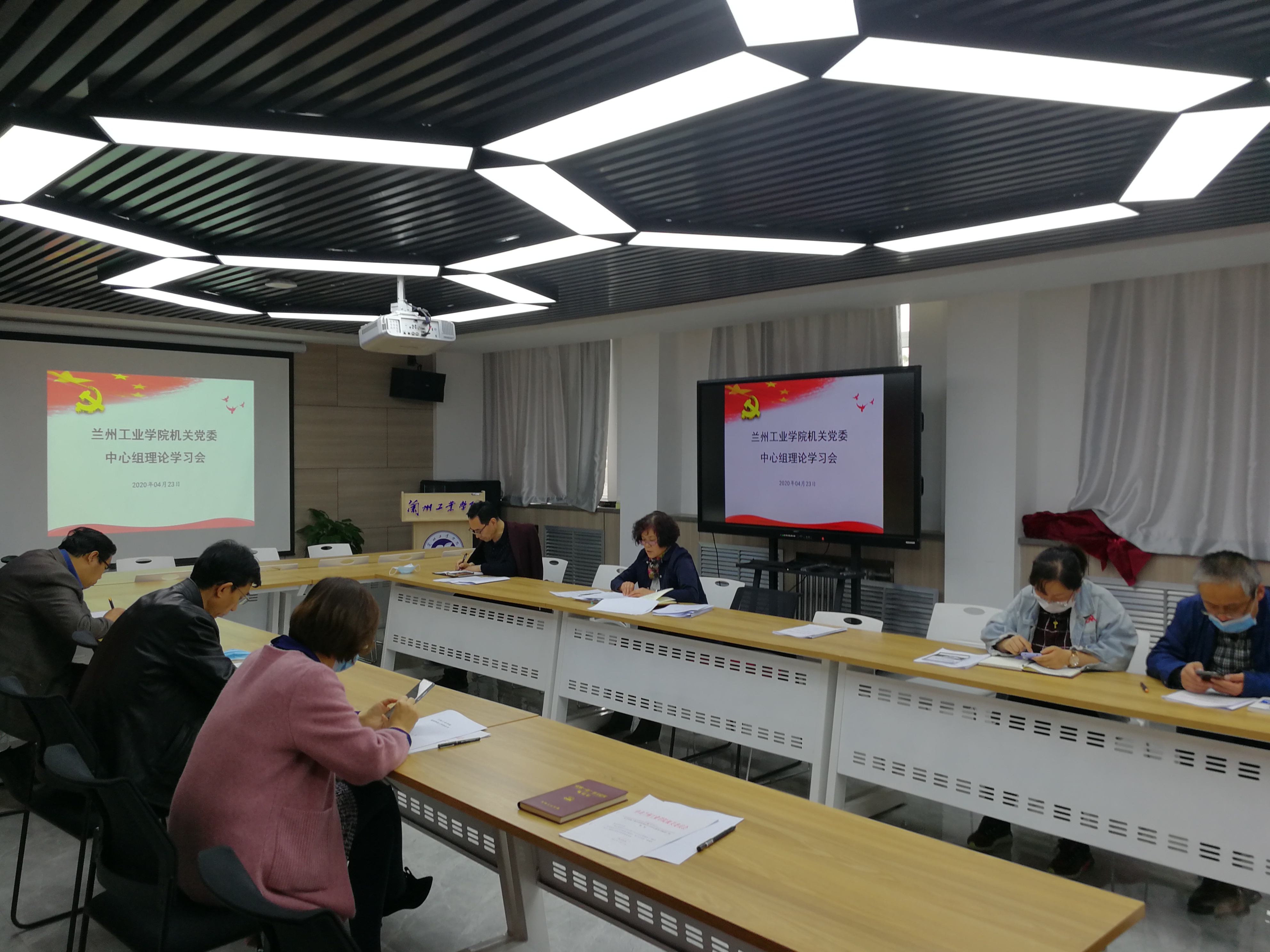 4月23日下午,机关党委理论学习中心组在创新创业学院路演大厅举行2020年第三次集中学习,机关党委书记马彩琴主持会议,机关党委委员、各党支部书记参加会议。