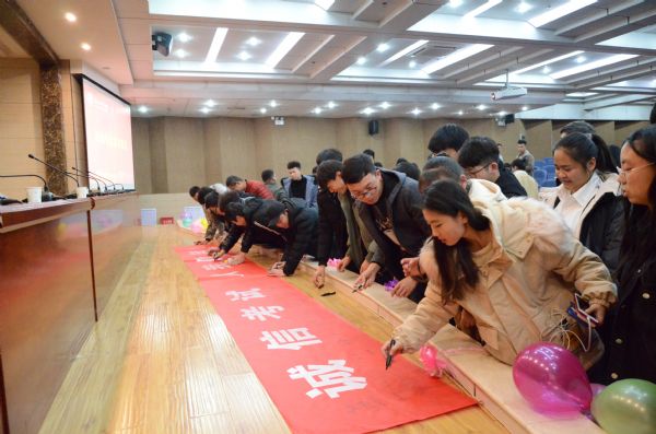 12月26日晚,材料工程学院在第三学术报告厅召开诚信考试动员大会,学院班子成员,全体辅导员、班主任以及各年级学生代表参加了会议。 会上,学院院长韩国才对期末考试纪律提出了具体要求,号召同学们算好经济账、道德帐,从思想源头上根除作弊动机。他强调,学院要进一步加强考风考纪督查工作,辅导员、班主任要齐抓共管,认真履行育人职能,坚决杜绝考试违纪作弊现象,积极营造一个洁净、公平的考试环境,力争使学院学风建设再上新台阶。 会后,全体学生在“诚信考试,从我做起”横幅上签名。