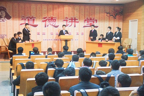 2019年12月19日下午,机电工程学院在第二学术报告厅举行第十七届“金鹰杯”辩论赛冠军赛。学院党委书记赵礼栋,党委副书记、副院长杨永萍,团委书记以及2019级全体学生观看了本次冠军赛。 赛场上,双方辩手围绕“当代青年人生排序是否应将自己放在第一位”展开激烈辩论,最终机设19-2班的参赛队员们夺得桂冠,陈众源、陈超超获本届比赛“最佳辩手”。
