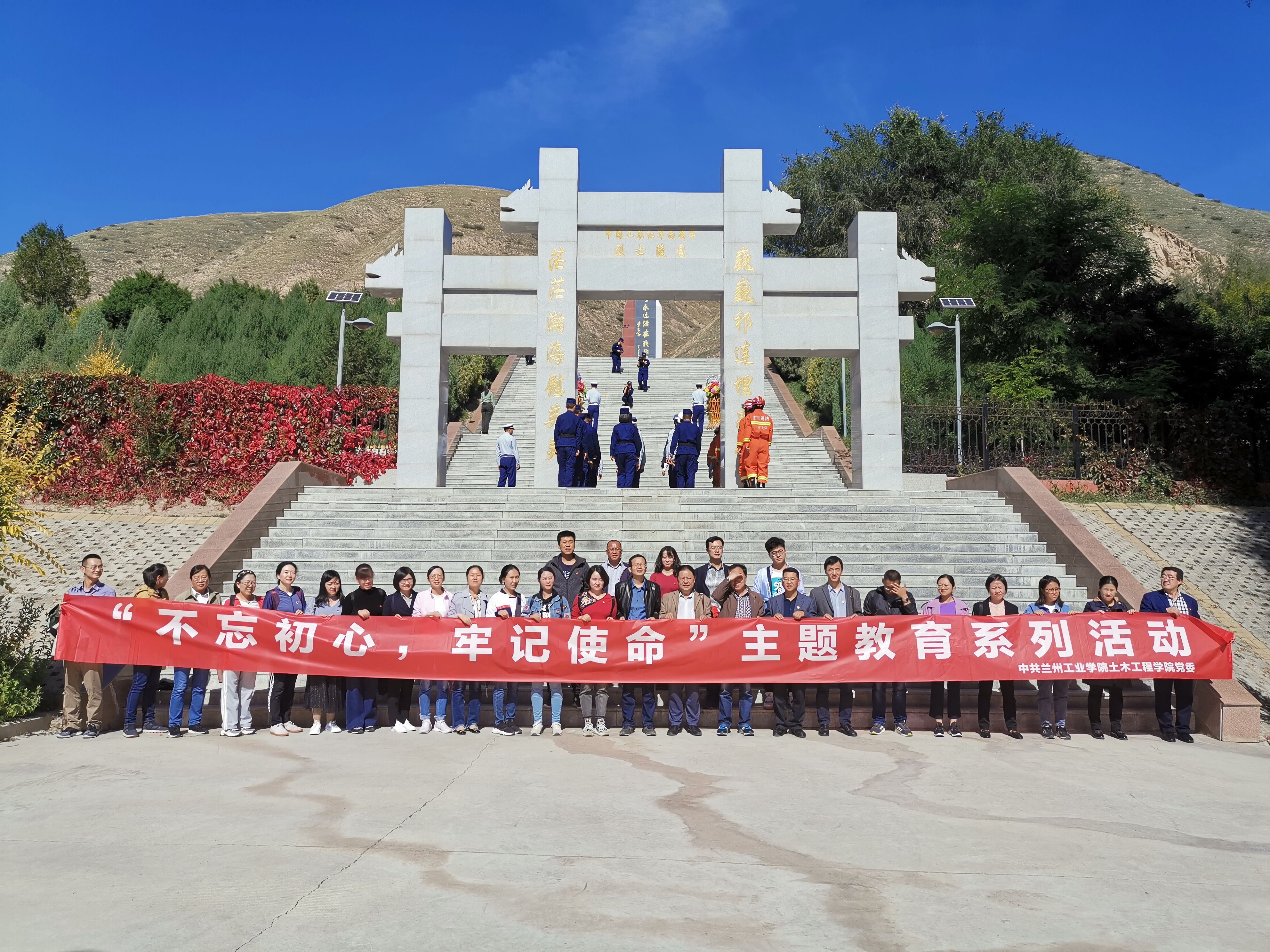9月30日,土木工程学院党委组织学院全体教工党员在古浪县开展“不忘初心 牢记使命”主题党日活动。 活动中,全体党员为西路军古浪战役纪念碑敬献了花圈并重温了入党誓词,先后参观了西路军古浪战役纪念馆和八步沙六老汉治沙纪念馆,并到八步沙林场进行参观,实地学习全国时代楷模——八步沙治沙六老汉历经三代人艰苦奋斗,敢把沙漠变绿洲的治沙精神。 通过本次主题党日活动,学院全体教工党员思想上有了收获,精神上受了洗礼。大家纷纷表示,要以此次主题党日活动为契机,结合学校“一重四改、转型发展、迎评促建”三大重点工作,在教学、科研等方面充分发挥党员先锋模范作用,争做“四有”好老师。
