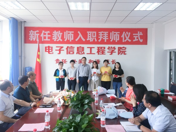 9月9日,在第35个教师节来临之际,电子信息工程学院在学院会议室举行庆祝教师节大会暨2019年新任教师入职拜师仪式。副校长李贵山应邀出席会议,学院党委书记李萍主持拜师仪式。