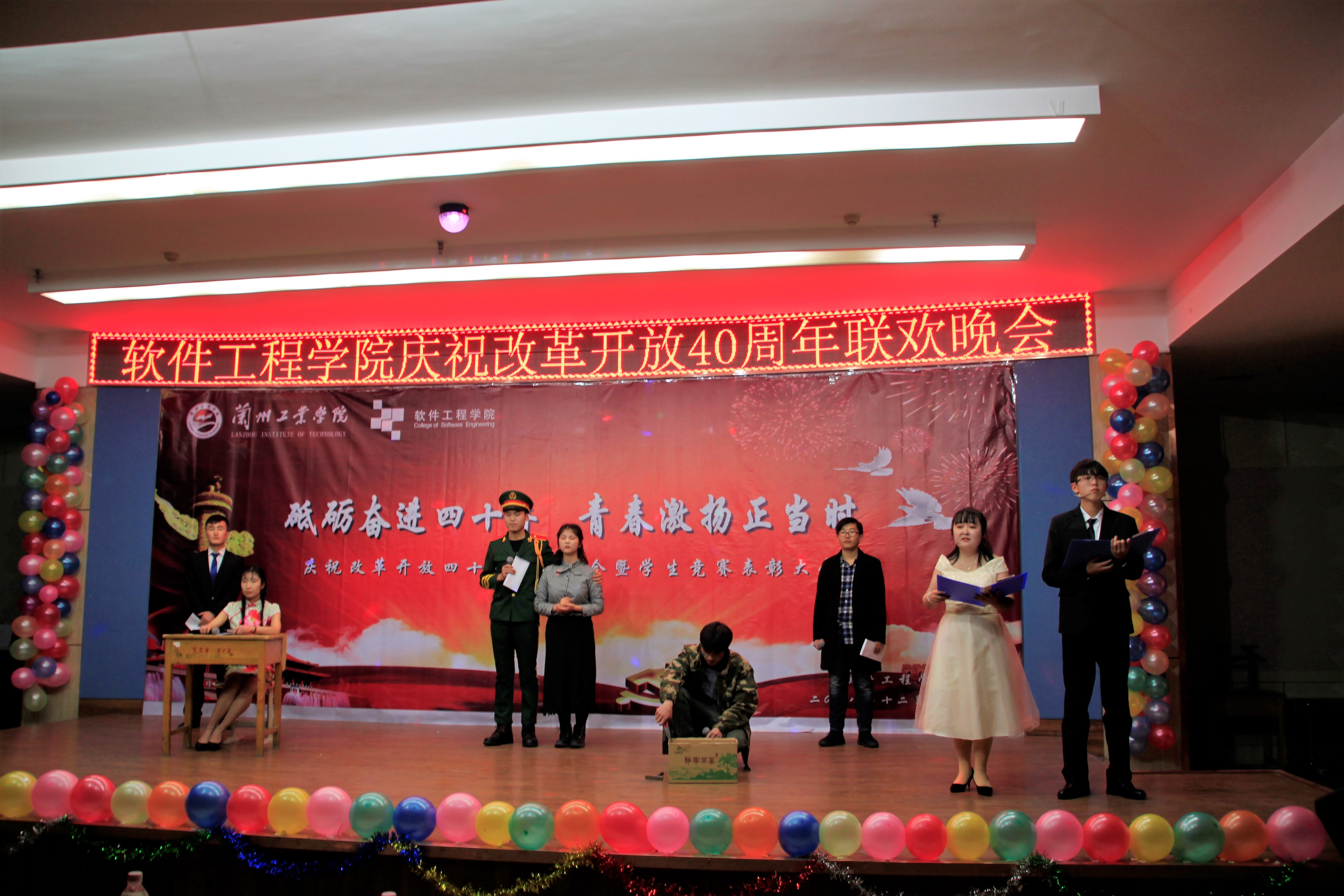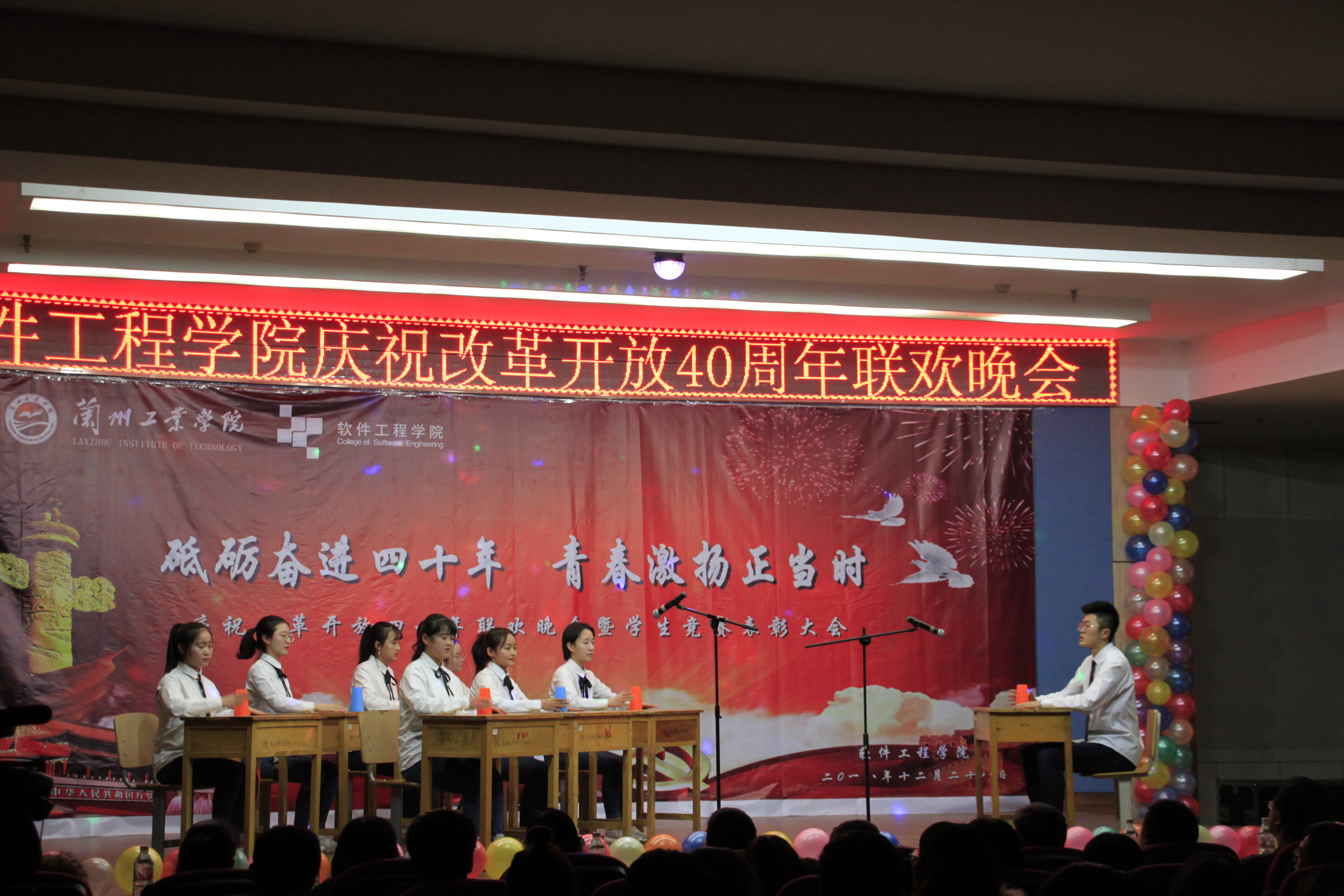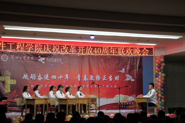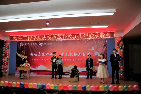 2018年12月28日晚,软件工程学院在八楼会议中心举行庆祝改革开放40年联欢晚会暨学生竞赛颁奖典礼。校团委负责人、学院全体党政领导及全院师生一同观看了演出,参加了颁奖典礼。