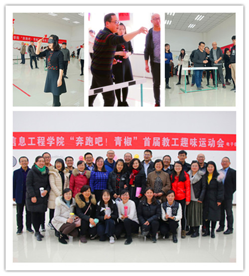 12月18日下午,电子信息工程学院在图书馆六楼举行首届“奔跑吧!青椒”教职工趣味运动会。全院教师踊跃参加、积极响应。 10支参赛团队参加了对靶投镖、蒙眼敲锣、钓鱼接力、掷球入筐等4个项目的比赛。比赛中,参赛队员相互加油、欢呼、喝彩,现场欢声笑语此起彼伏。本次活动的开展,丰富了学院教工的课余文化生活,增进了教工之间的友谊,增强了集体凝聚力,充分调动了全体教工的热情和积极性,使大家能够以更加饱满的精神状态投入到工作中。