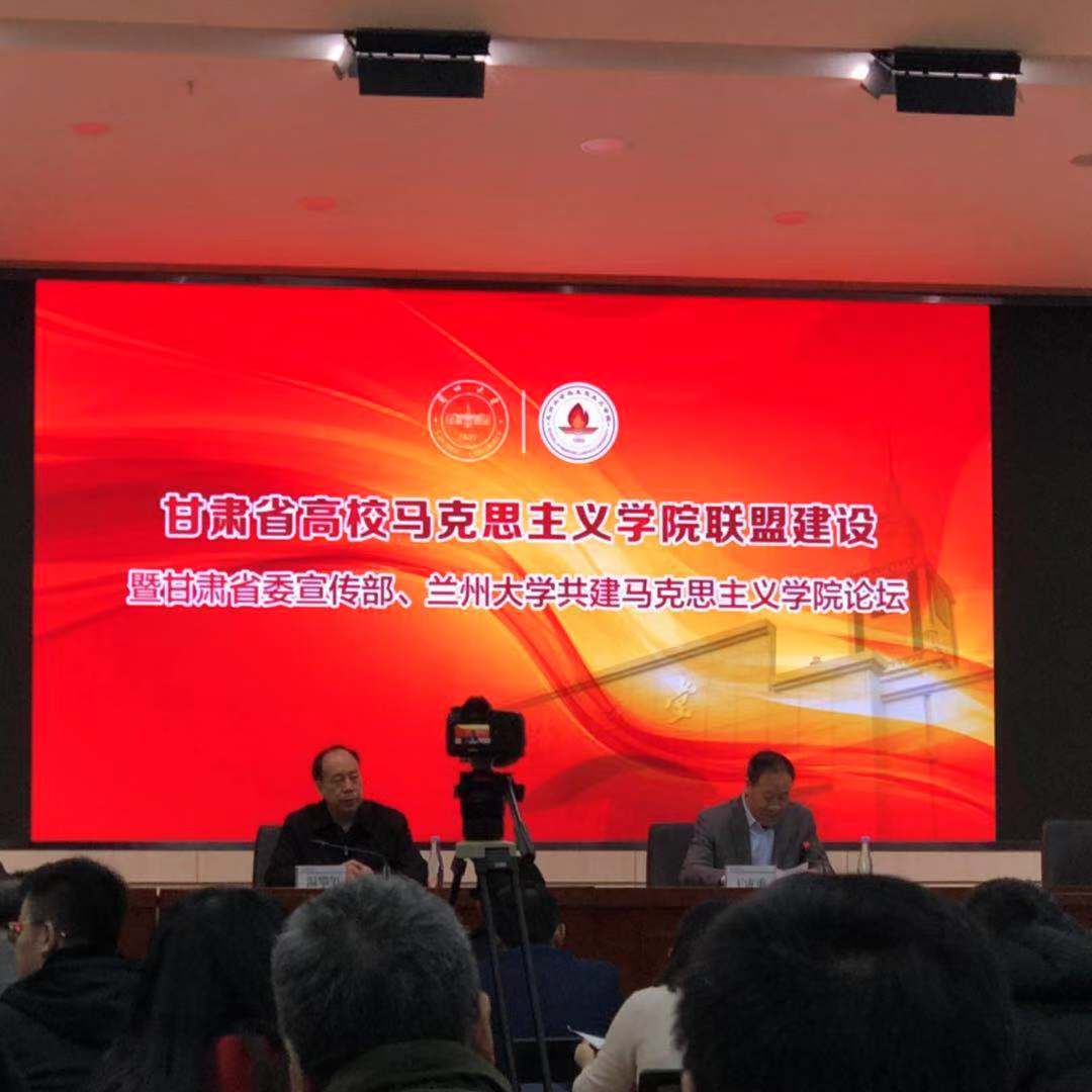 2018年12月15日,甘肃省委宣传部、兰州大学共同举办了甘肃省高校马克思主义学院联盟建设会议,省委宣传部副部长王成勇、省委宣传部理论处处长李庆吾、省教育厅思政处处长温攀玺、兰州大学党委副书记郭琦出席会议。甘肃各高校马克思主义学院院长、党总支书记、副院长及教师代表参加了会议。我校马克思主义学院院长张小华、党总支书记王重贤、副院长张小东以及教研室主任、教师代表共10人参加了会议。