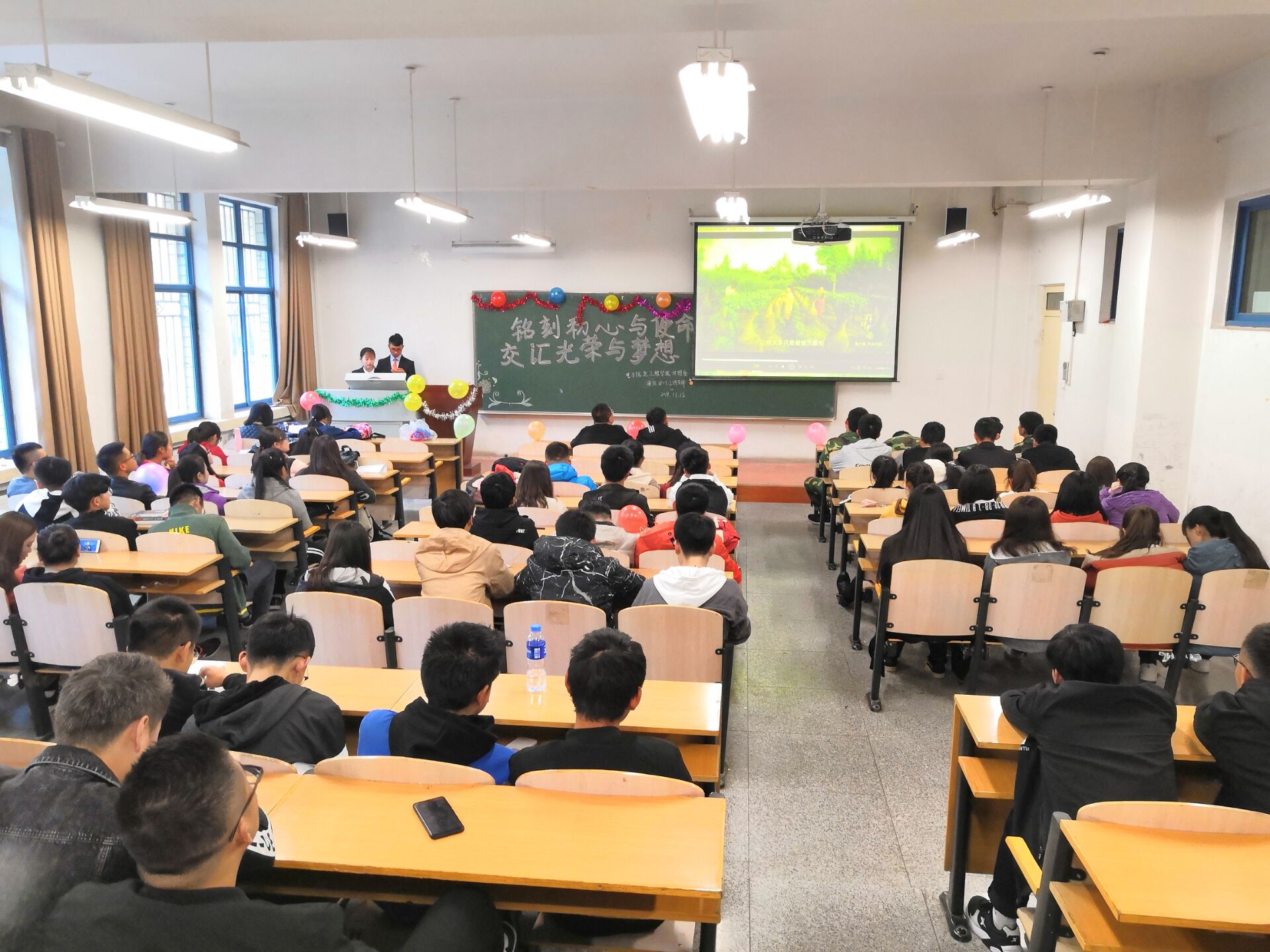 为进一步动员广大团员青年高举习近平新时代中国特色社会主义思想伟大旗帜,全面贯彻党的十九大精神,为决胜全面建成小康社会而奋斗,2018年11月,11个二级学院59个团支部举办了“铭刻初心与使命·交汇光荣与梦想”为主题的系列团日活动。 活动期间,各团支部充分准备、精心策划,以知识竞赛、视频学习、诗歌朗诵、主题演讲、小组互动、文艺表演等形式展开了一系列切合主题的活动,引导广大青年不忘初心,牢记使命,勇于担当,树立伟大理想,锤炼真本领,以“新气象、新作为”迎接新时代、谱写新征程。