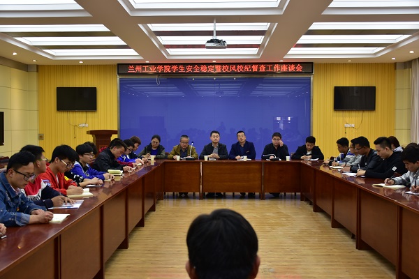 4月17日下午,学生工作部、党委武装部、校团委在第一学术报告厅召开校园安全稳定暨校纪校风督察工作座谈会。党委武装部部长张鹏飞、学生工作部部长贾魁、学生处副处长赵恺、团委副书记李雯娟、各校级学生组织负责人及校纪校风督察团全体成员参加会议,校团委书记王斌主持会议。