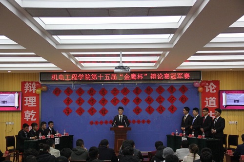 12月10日晚,机电工程学院在第一学术报告厅举行第十五届“金鹰杯”辩论赛冠军赛。学院党总支书记张红岩、有关教师以及各学院学生组织负责人一同观看了比赛。 经过双方精彩的辩论,最终机设17-1班获得冠军。此次活动为学院学子们提供了一个交流和锻炼的平台,展示了学子的蓬勃朝气和勇于展现自我的能力,丰富了校园文化生活。