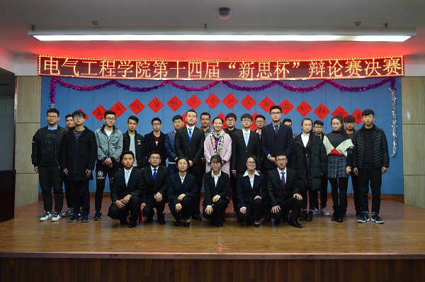 2017年12月6日晚,电气工程学院在八楼会议中心举办“新思杯”第十四届辩论赛决赛。学院有关教师和学校各学生组织负责人一同观看了此次辩论赛。 此次比赛历时一个月,共有18支队伍参加了比赛。比赛中,辩手们用出众的应变、表达能力、敏捷的思维赢得了在场观众的阵阵掌声。经过激烈的角逐,最终轨道17-1班获冠军、轨道17-2班获亚军。 此次活动为学院学子提供了展现自己的舞台,提高了班级凝聚力,对深化学生文化建设起到了积极作用。