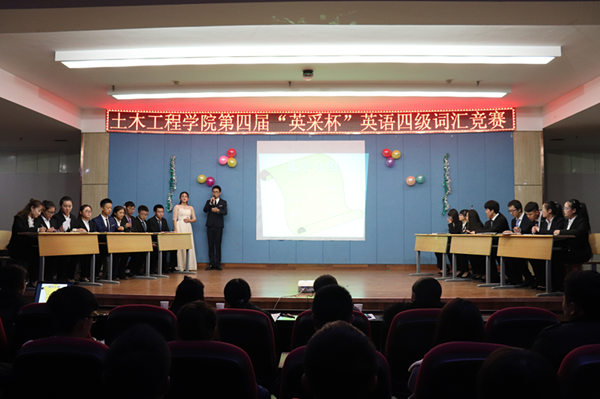 2017年11月30日晚,土木工程学院在八楼会议中心举办第四届‘英采杯’英语四级词汇竞赛决赛。六个代表队18名选手参加了比赛。外教Josh、学院副院长陈玉梅,以及学院17级全体学生观看了比赛。