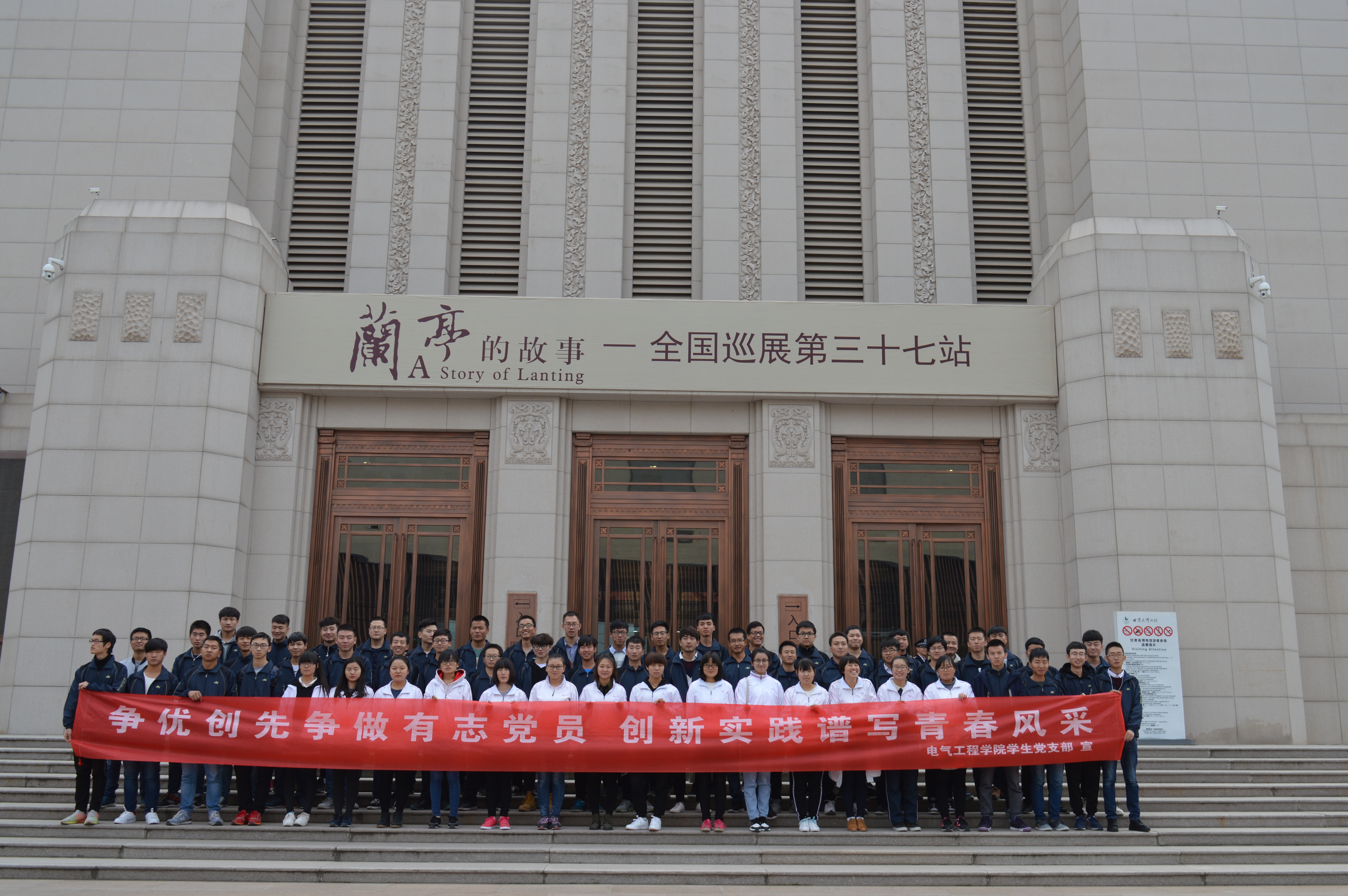 2017年10月28日下午,电气工程学院分党校组织第十二期入党积极分子参观甘肃省博物馆。 红色甘肃展厅是此次参观过程中的重点,此展厅共分五个篇章,系统的阐述了中国共产党在甘肃省的发展历程,同时也对抗战英雄的生平事迹进行了描述,将红军会师的事迹娓娓道来。此次参观让同学们更深刻的了解了共产党人艰苦奋斗的历程,为新中国建立而不畏牺牲的革命精神,感受到如今幸福生活的来之不易,坚定了同学们向党组织靠拢的决心。大家表示将认真学习党的十九大精神,为实现中华民族伟大复兴的中国梦贡献自己的力量。