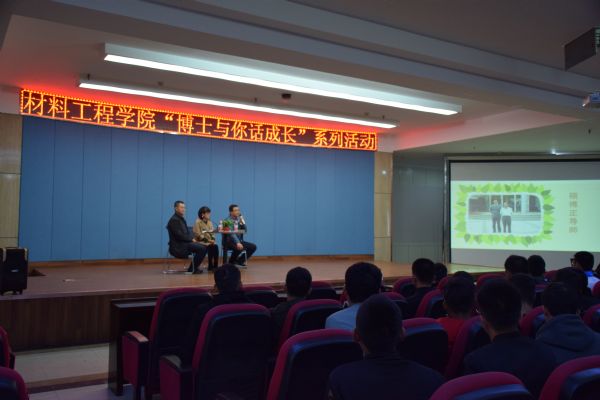 举办“博士与你话成长”系列活动是材料工程学院“课堂思政”向课外延伸的一个举措。这些活动将大学生思政教育和学风建设有效地结合起来,帮助新生了解了专业课程设置、教学现状、发展前景及就业情况,以便新生更快更好的适应大学生活,规划好自己的职业生涯。