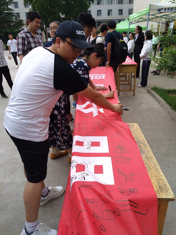 6月13日,土木工程学院学生党支部在本校区餐饮中心前广场举办以“倡导文明离校,提高安全意识”为主题的签名活动。全校部分师生参加了活动。 本次活动旨在对毕业生进行教育与引导,并倡议学生党员在毕业生离校期间起模范带头作用,协助学校完成毕业生离校工作,给2017届毕业生营造一个温馨、和谐的校园氛围,确保每一位毕业生都能顺利安全文明离校,促进学校和谐校园的建设。