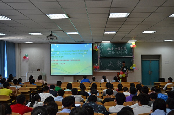 2017年6月6日下午,土木工程学院在南校区四教C201举办第四届“英采杯”英语演讲比赛总决赛,外教Josh 、MJ,学院副院长陈玉梅以及教师杨黎黎担任大赛评委。 比赛分为自命题演讲、抽图即兴演讲两个环节,自命题演讲增加了诗歌朗诵和电影配音等灵活鲜动的形式。来自全院的12名参赛选手以其流利的英语口语、良好的现场表现赢得了全场观众的阵阵掌声。经过激烈的角逐,土木16-2班学生张鹏荣获一等奖。比赛结束后,外教Josh对整场比赛作了精彩点评。 本次比赛,充分展现了学院学生的风采,调动了全院学生学习英语的积极性,为即将到来的全国大学英语四、六级考试营造了良好的学习氛围。