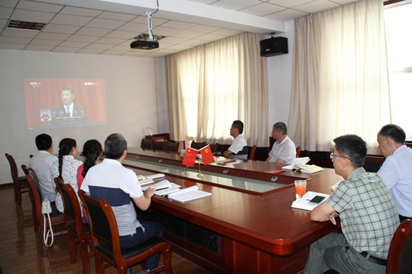 7月1日上午10时,在雄壮的国歌声中,庆祝中国共产党成立95周年大会在人民大会堂隆重开幕。中心全体党员怀着激动的心情,认真观看了大会的盛况,聆听了习近平总书记的重要讲话,回顾了我们党团结带领中国人民不懈奋斗的光辉历程,展望了中国特色社会主义蓬勃发展的前景和实现中华民族伟大复兴的光明愿景。习总书记的重要讲话高屋建瓴,统揽全局,内涵丰富,思想深刻,通篇闪耀着当代马克思主义思想光辉,深刻回答了新形势下加强和改进党的建设的新课题,全面阐述了坚持和发展中国特色社会主义的新要求,吹响了团结带领全国各族人民实现“两个一百年”奋斗目标的强劲号角,充分展现了共产党人的本色初衷、雄心壮志和使命担当。大家表示:要认真学习习近平总书记重要讲话精神,深刻领会“坚持不忘初心、继续前进”的要求,向全国优秀党员、优秀党务工作者和先进基层党组织学习,忠诚履行职责,在平凡的工作岗位上为党旗增添光彩。
