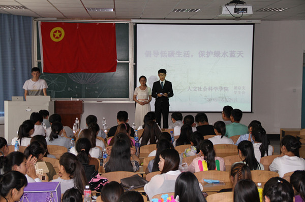 6月21日下午,人文社会科学学院团总支在四教C202举行 “倡行低碳生活,保卫碧水蓝天”的主题团学活动,学院学工班主任、团总支书记,校学生会主席、各院学生会负责人参加了此次活动。 本次活动以环保视频播放、环保主题朗诵、环保小品表演和环保手工艺品展示等形式开展。活动中,同学们展示了自己制作的环保手工艺品,讲述他们自己的环保故事,从身边点滴做起,珍惜和爱护我们的校园环境。通过开展本次活动,使我们每一位团员青年努力成为低碳生活的倡导者,低碳理念的传播者,低碳生活方式的践行者。(供稿、摄影/人文社会科学学院)