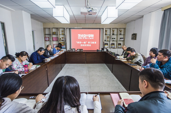 2016年5月17日下午,艺术设计学院在学院会议室召开“学党章党规、学系列讲话,做合格党员”学习教育推进会。党总支书记张海鹏、院长马牧群、副院长李志忠和全体教工党员参加了会议,张海鹏主持会议。