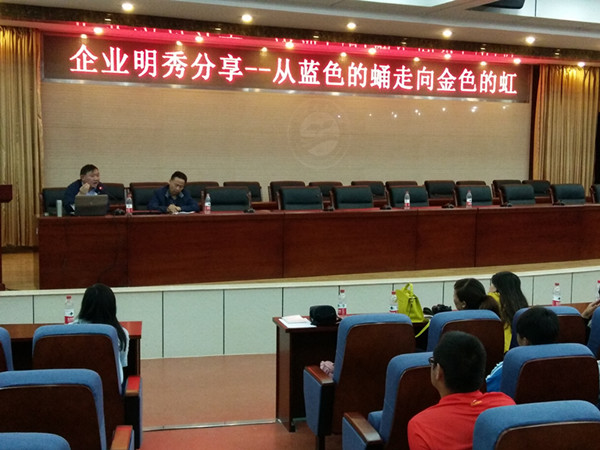 2016年5月17日下午,电气工程学院邀请甘肃兴通电力安装工程有限公司总经理、甘肃思创药业有限公司总经理、甘肃兴通农业科技有限公司董事长靳辉作“从蓝色的蛹到金色的虹”专题讲座。学院党总支书记吴安生、副院长张维玲、学工办主任、辅导员以及13级、14级、15级学生代表聆听了此次讲座。
