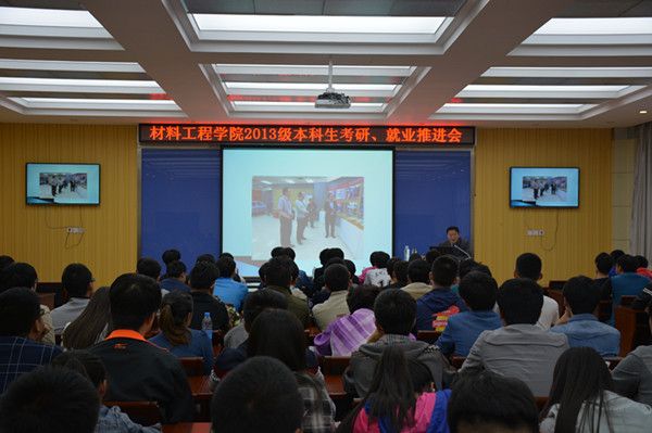 4月27日晚,材料工程学院在第一学术报告厅举行2013级本科生考研、就业第三次推进会。材料工程学院党总支书记韩国才围绕考研和就业问题作了动员讲座。