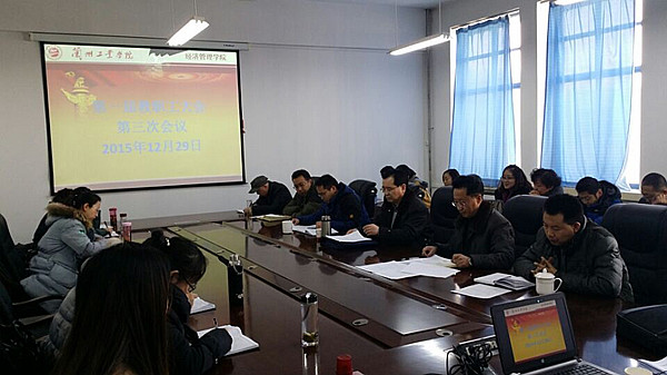 2015年12月29日,经济管理学院第一届教职工大会第三次会议在学院会议室召开。纪委书记廉志端出席会议。学院党总支书记王春升主持会议。经济管理学院全体教职工参加会议。