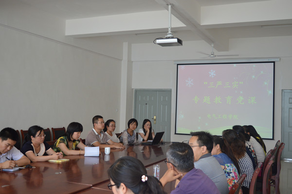 2015年7月7日,电气工程学院在院会议室举办“三严三实”专题教育党课。院党总支书记吴安生向学院全体党员作了题为“加强教风、学风建设,积极推动学院转型发展”的专题报告。