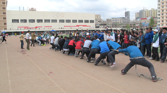 开幕式结束后,各项赛事有条不紊地进行,个人项目与集体项目、竞赛项目与趣味项目有机融合在一起。赛场上运动健儿们激情飞扬、奋力拼搏,台上主持人追踪报道比赛进程,热情洋溢地宣读着各班通讯员现场撰写的稿件,整个赛场热闹非凡,秩序井然。拔河比赛更是在一阵阵的加油声和呐喊声中把整个运动会推向了高潮。