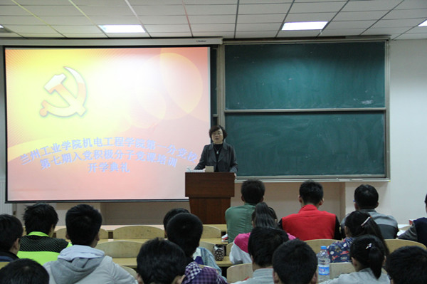 2015年4月2日晚,机电工程学院在第四教学楼C101教室举行第七期入党积极分子党课培训开学典礼。学院党总支书记张红岩、副院长杨永萍、院学工办主任马青丽以及本期90名入党积极分子参加了开学典礼。杨永萍主持开学典礼。