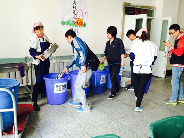活动中,校学生会在北校区食堂,围绕“厉行节约,反对浪费”、“文明就餐从我做起”等主题向前往就餐的同学们进行宣讲,并以身作则,号召、引导同学们按需买饭、节约粮食、自觉收拾餐桌餐盘。饮食服务中心在北校区餐厅一楼、二楼东北角分别放置了4个餐盘泔水回收桶,同学们主动将用过的餐具放入其中,并纷纷表示响应号召,不乱扔餐巾纸、包装袋,积极营造良好的就餐环境。