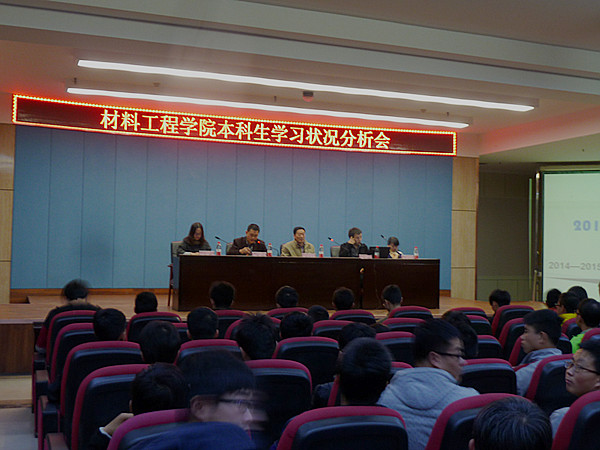 3月17日,材料工程学院召开2013级、2014级本科学生学习状况分析会。学院党总支书记韩国才、副院长贾魁出席会议,辅导员郭峰、武明、李娟娟以及全院388名本科生参加会议。