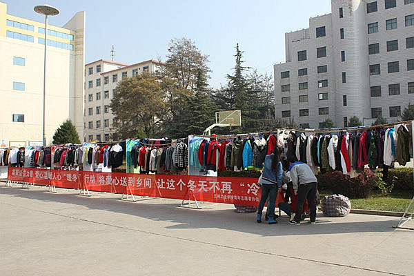 活动中,青年志愿者协会为方便同学们捐赠,在南北校区宿舍楼下设立多个捐助点。得知消息的老师及同学们纷纷整理衣物,献出自己的爱心。志愿者们不辞辛苦,将大家捐赠的衣物进行晾晒、分类,并及时和贫困村镇取得联系,细致统计五保户名单,本着“奉献、友爱、互助、进步”的志愿者宗旨服务于社会,用爱心点燃希望。