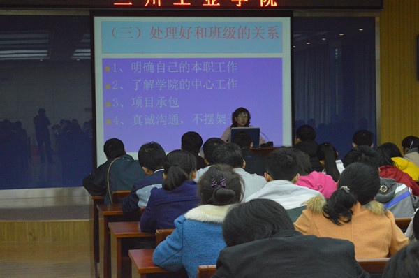 本次培训活动采取自学与集中讲授相结合的方式进行。邀请了电气工程学院党总支书记吴安生、副院长张维玲、学工办主任牛玉婷、团总支书记吕雪婷围绕做一名学生干部是一门艺术、学生干部处理关系技巧、常见公文写作、大学生社交礼仪等主题开展相关的培训。此外,还进行了影视欣赏、素质拓展、读书心得交流等一系列的活动。(供稿、摄影/电气工程学院)