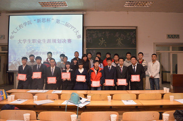 2014年11月13日晚,电气工程学院在JT101举办第二届“新思杯”PPT大赛——职业生涯规划大赛。电气工程学院辅导员及学校各级学生干部观看了决赛。