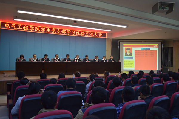 为进一步加强学风建设,增进广大学生学习的积极性和主动性,2014年10月27日晚,电气工程学院学习经验交流大会在八楼会议中心举行。电气工程学院学工办主任、学生党支部书记牛玉婷,团总支书记吕雪婷、全体辅导员以及2014级全体学生参加了此次交流会。