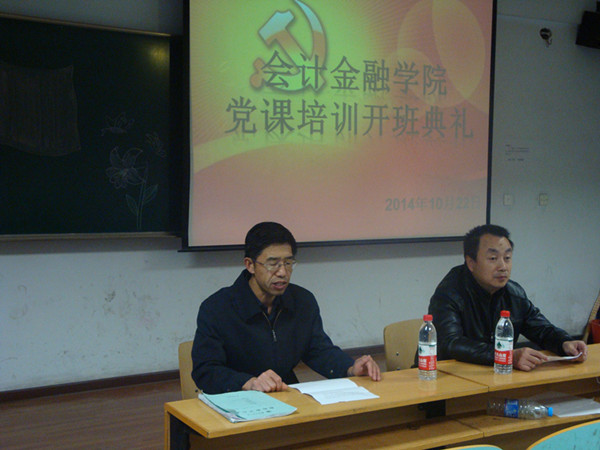 2014年10月22日晚,会计金融学院分党校在第一教学楼A304举行第六期入党积极分子培训班开班典礼。会计金融学院党总支书记沈文国、辅导员和70名学员参加了典礼。