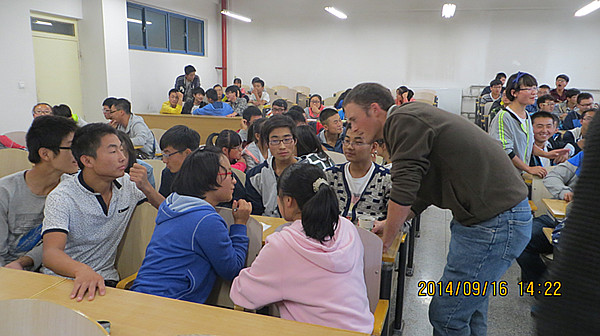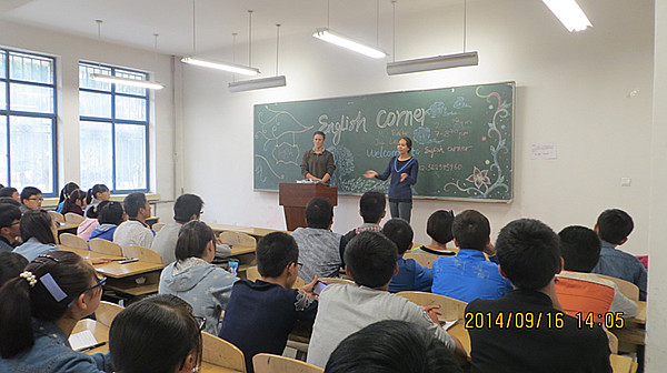 为了营造良好的英语学习氛围,给英语爱好者提供一个互相交流的平台,提高学院学生的大学英语四、六级通过率,土木工程学院本学期开始长期聘请学校外教主持学生英语角活动。9月16日,土木学院第一次英语角活动在四教104举行,美国籍外教Josh Lewis和Marlena Joy主持了本次活动,学院近一百名学生参加了活动。活动开展过程中,两名外教与每一位学生进行了口语交流,他们幽默风趣的谈吐给学生留下了十分深刻的印象,英语角活动也得到了学生的一致好评。(供稿、摄影/土木工程学院)