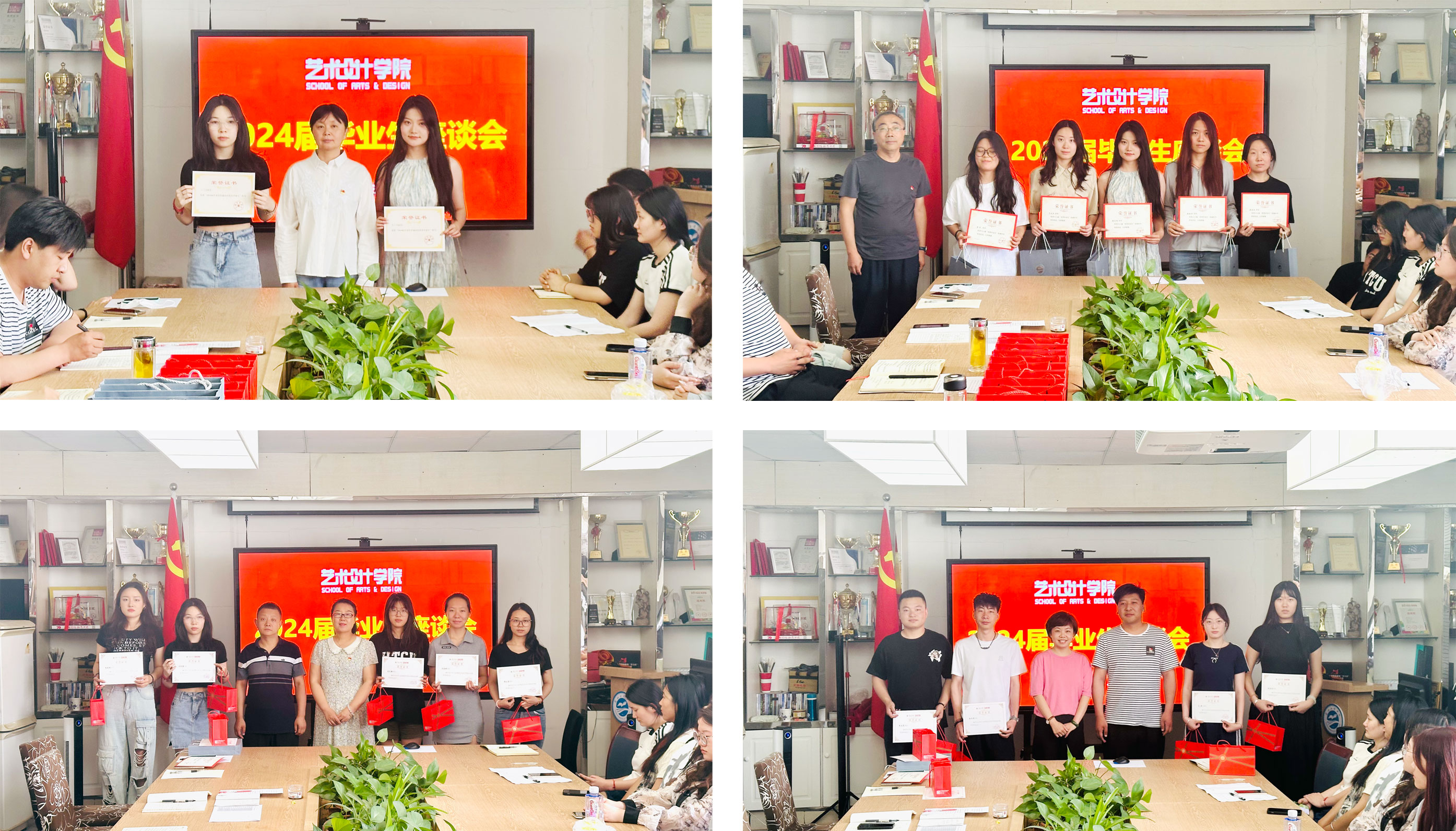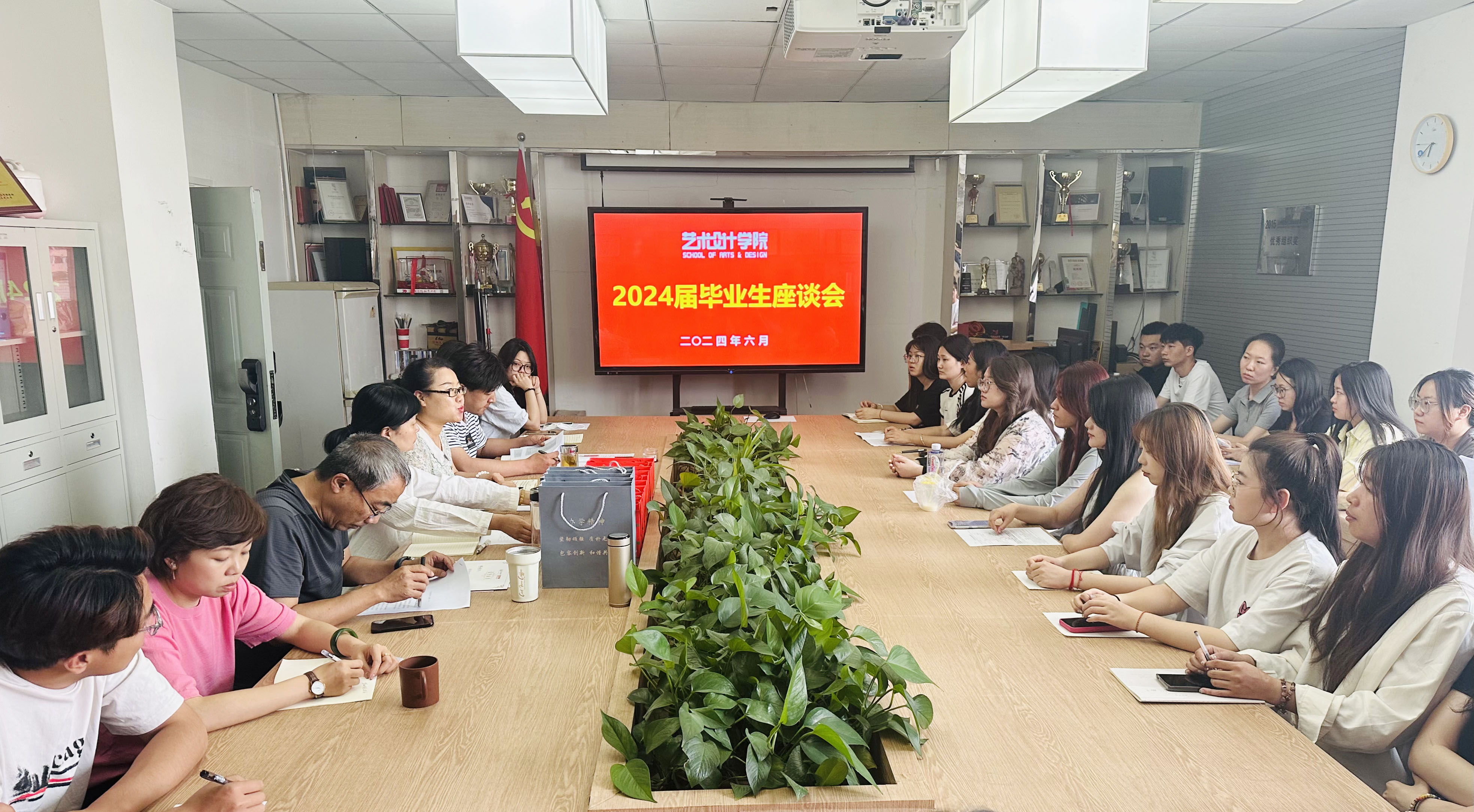 在听取了毕业生发言后,院长马牧群对即将毕业的学生表示祝贺,并对他们四年来在学术和艺术创作上取得的成绩给予了高度评价。他强调,艺术设计学院一直致力于培养具有创新精神和实践能力的专业人才,今天的座谈会是对这一教育理念的体现。他表示,对同学们提出的希望学院能增加更多与行业合作的项目,以及提供更多的创业指导和支持等建议,学院将会认真考虑并在未来的课程设置和教学实践中加以落实。