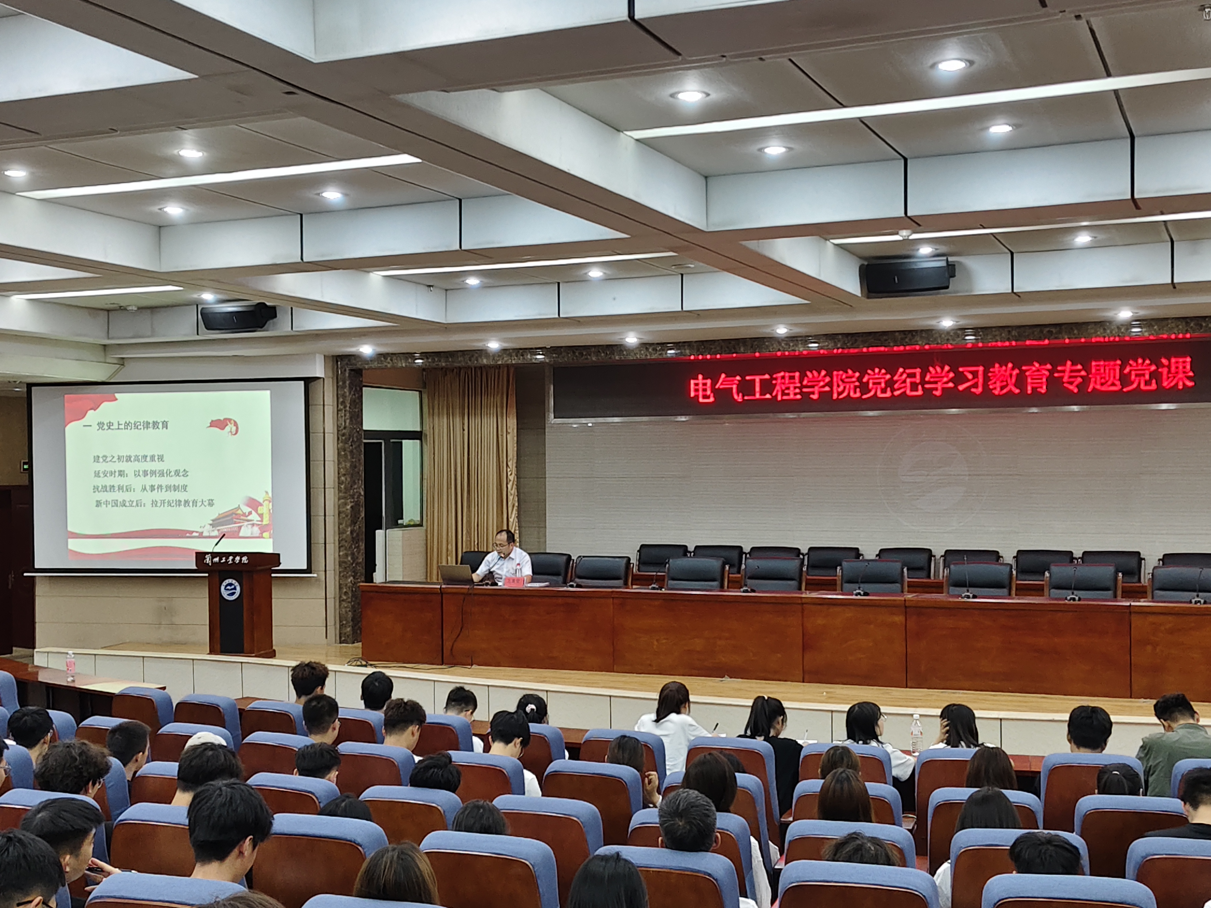 6月12日晚,电气工程学院在第三学术报告厅举办党纪学习教育专题党课。学院党委书记王重贤作学习《中国共产党纪律处分条例》的专题党课。学生党员、预备党员共250余人聆听了讲座。